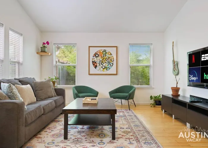 South Congress Living W Gorgeous Porch And Backyard Vila Austin está localizada a uma distância de 3.3 km do Capitólio do Estado do Texas, dando acesso a vários pontos turísticos próximos.